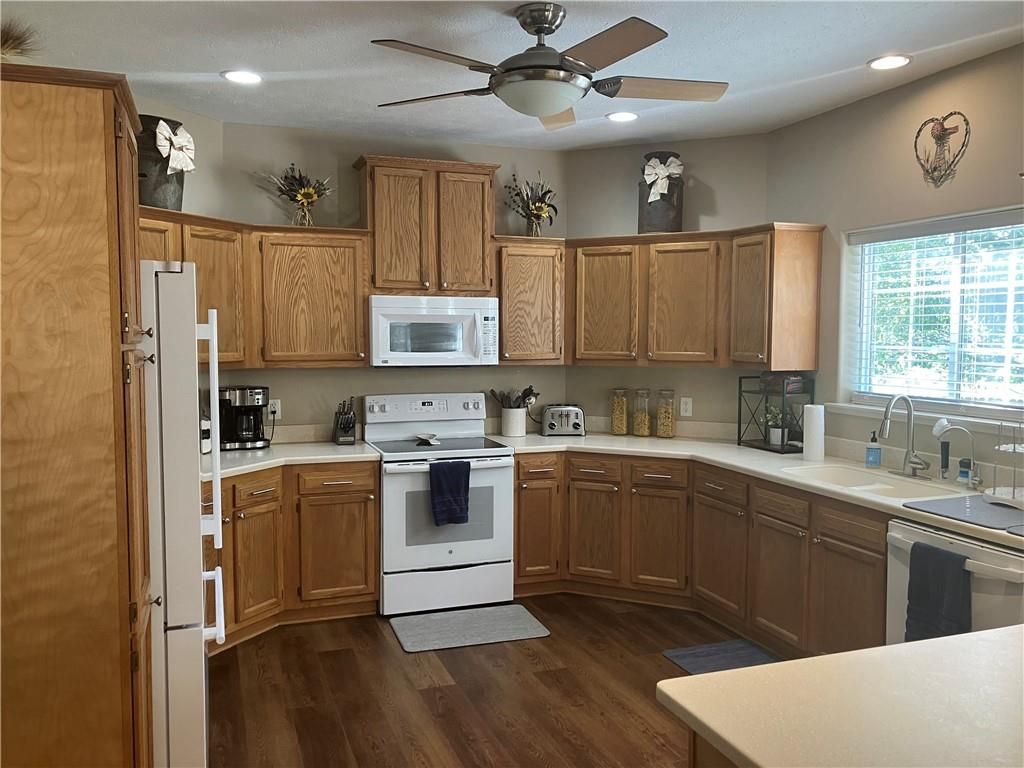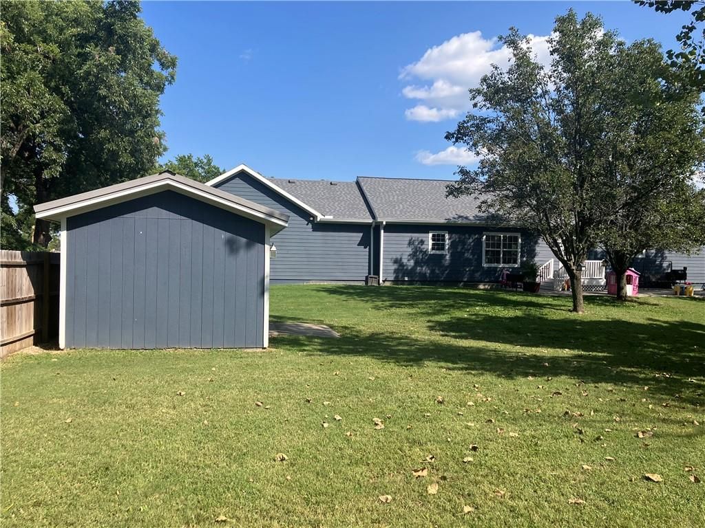 This 4 bedroom, 2 bath home is liable to check all the boxes! Built in 2003, this home is in immaculate condition both inside and out. Located within the city limits of La Cygne, KS, the home has been well cared for and features large bedrooms, spacious floor plan, hardwood floors throughout with a laundry room and additional office space/mud room. Also, a two car garage is attached and offers plenty of room for both vehicles. The home also features a full size basement with a spare bedroom located downstairs as well for additional finished square footage. Got pets and/or children? No worries, a solid privacy fence surrounds the backyard keeping both kids and pets safe. The backyard also has a shed located in it to keep those outside toys in. The wood siding, roof and HVAC are less than five years old. This home sits next to two empty lots, also listed for sale currently, all located in a cul-de-sac on the northeast edge of town! Two adjacent vacant lots are also listed for sale: Lot 5 MLS# 2574480 Lot 4 MLS# 2574493
