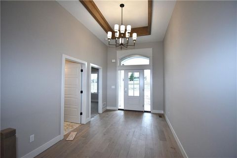 Welcome to the Ridgedale plan! Beautiful reverse story and half with a farmhouse style decor. Spacious rooms, spectacular trim work and openness throughout. Four bedrooms, 3 full and one half bath. Walk out family room and wet bar. The kitchen offers a spacious island, granite countertops and walk in pocket office / pantry, as well as a mud room off the kitchen. The exterior features Wood features and stone. Entertain easy during the holidays on both floors and the covered deck. HOA community pool, pond, walking trail, pickle ball court, outdoor pavilion with 2 fireplaces, and outdoor corn toss. Photos current as of 2/18/2026. Home scheduled for March 2026 for completion.