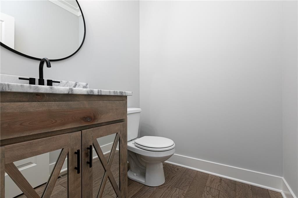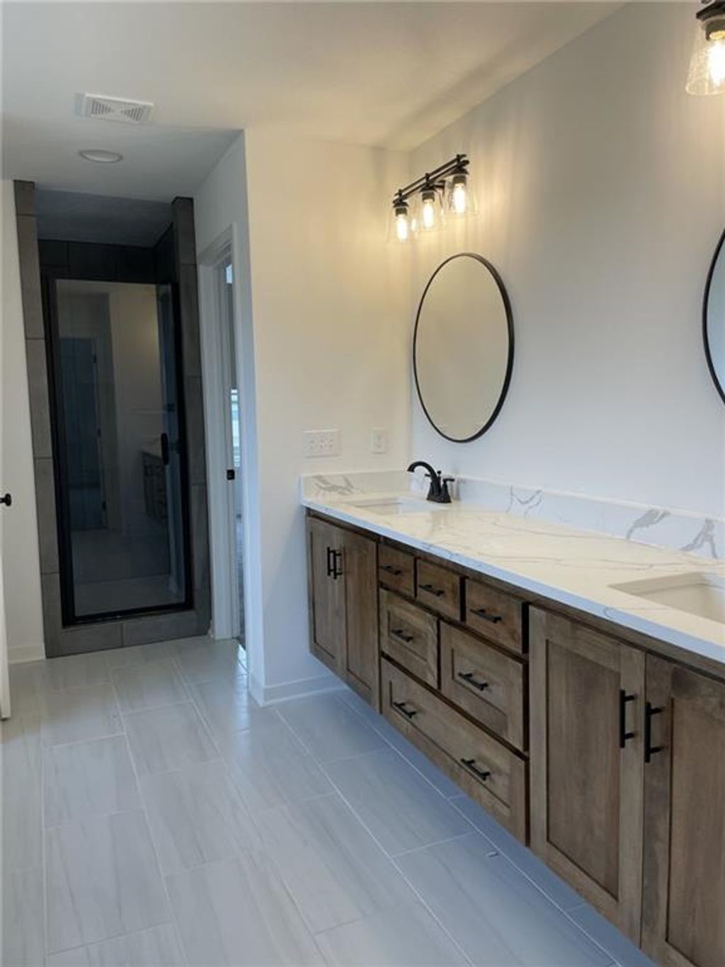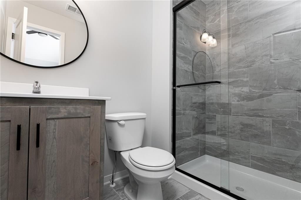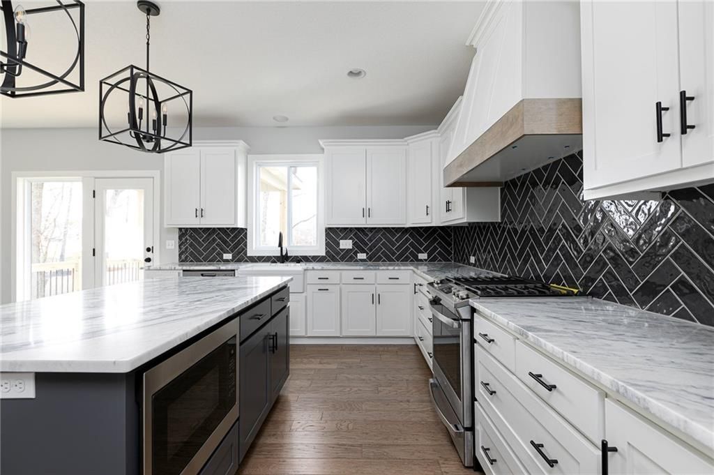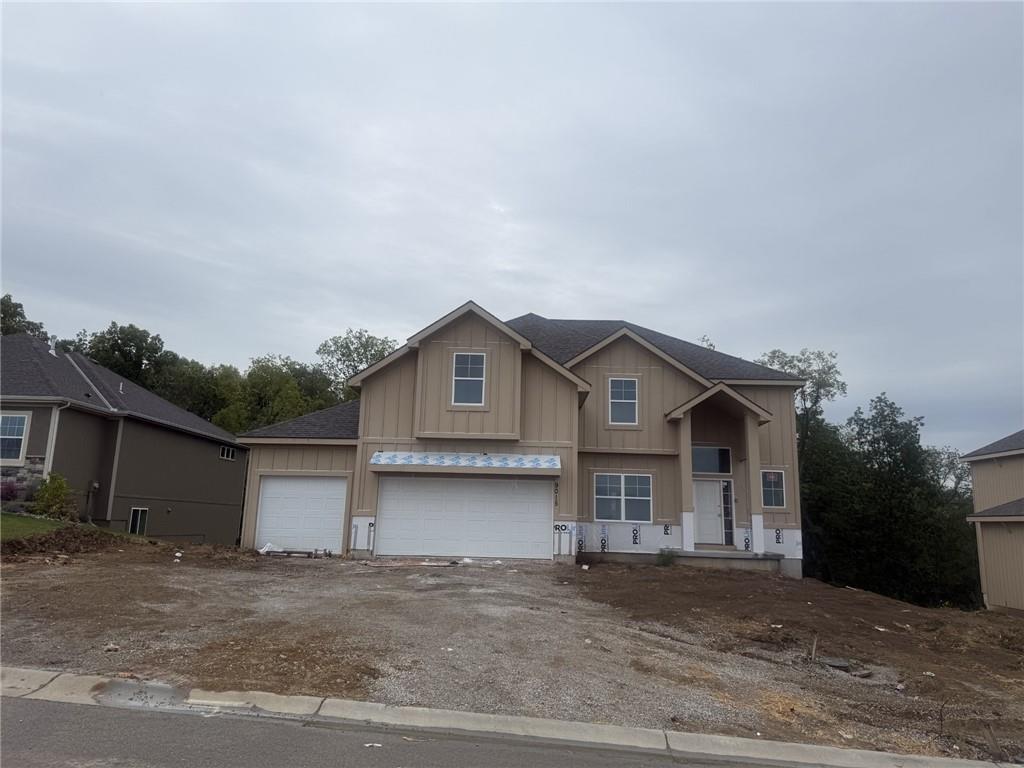 The ELM plan with that impressive two story entry! New Front elevation on this home with tin roof over the garage. Living Room with Fireplace and cabinets with floating shelving either side. Enclosed Office space or can be Formal Dining. Well appointed kitchen with custom cabinets, granite/quartz tops walk in pantry and additional butler pantry cabinets. Half Bath and drop zone off the garage entry. Carpet in the Office/Dining. Engineered wood or LVP in the remaining main floor areas. Carpet in the Bedrooms and high traffic carpet on stairs. Second level Master Suite with large tiled shower, free standing tub, XL walk in closet. Two bedrooms share a bath. Fourth Bedroom is a private bath suite. Covered deck and small patio included. This home backs up to treed HOA ground for great privacy. Interior Photos to show EXAMPLE of finish. Not all homes finished alike! Builder discretion on design changes. Can make all selections for limited time. Estimated completion date LATE OCTOBER 2025