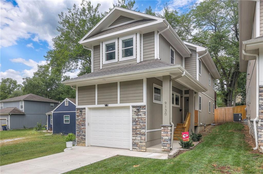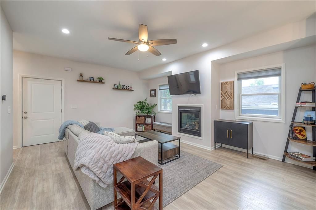 Priced below tax appraisal! This nearly new Waldo home blends modern design with everyday comfort in a location that's hard to beat. The open main level is filled with natural light and features a cozy fireplace and a stylish kitchen with quartz countertops, stainless steel appliances, and an oversized island - perfect for casual nights in or entertaining friends. Upstairs, the primary suite feels like a true retreat with a private deck, spa-inspired bath, and an impressive walk-in closet, while the finished lower level offers flexible space for a home office, gym, or movie nights. Outside, enjoy a fenced backyard and patio, all just minutes from the Plaza, dining, and everything Kansas City has to offer. This home is only about 3 years old and move-in ready! Buyer to verify taxes, square footage, and schools.