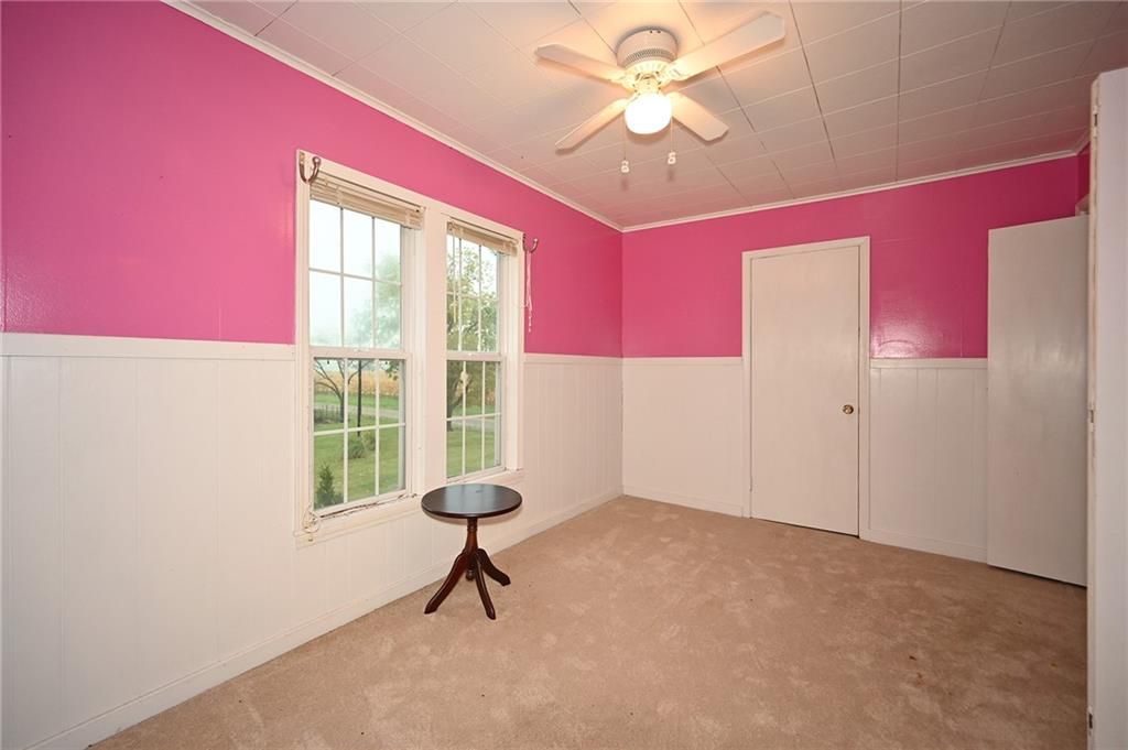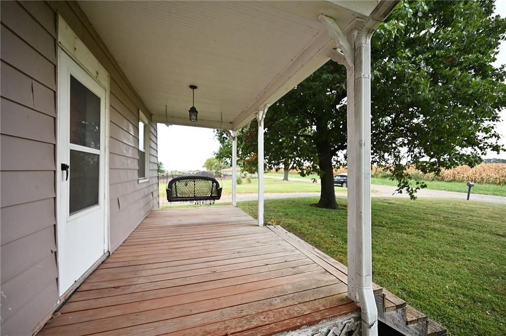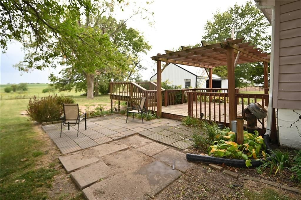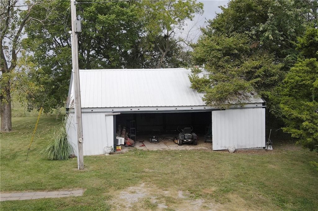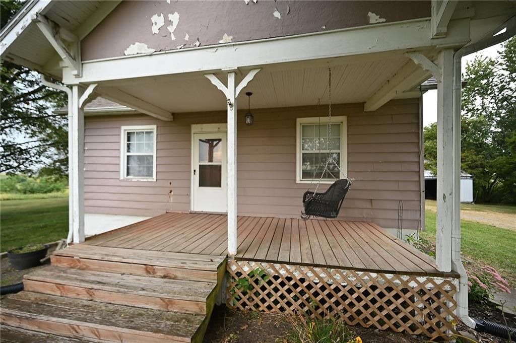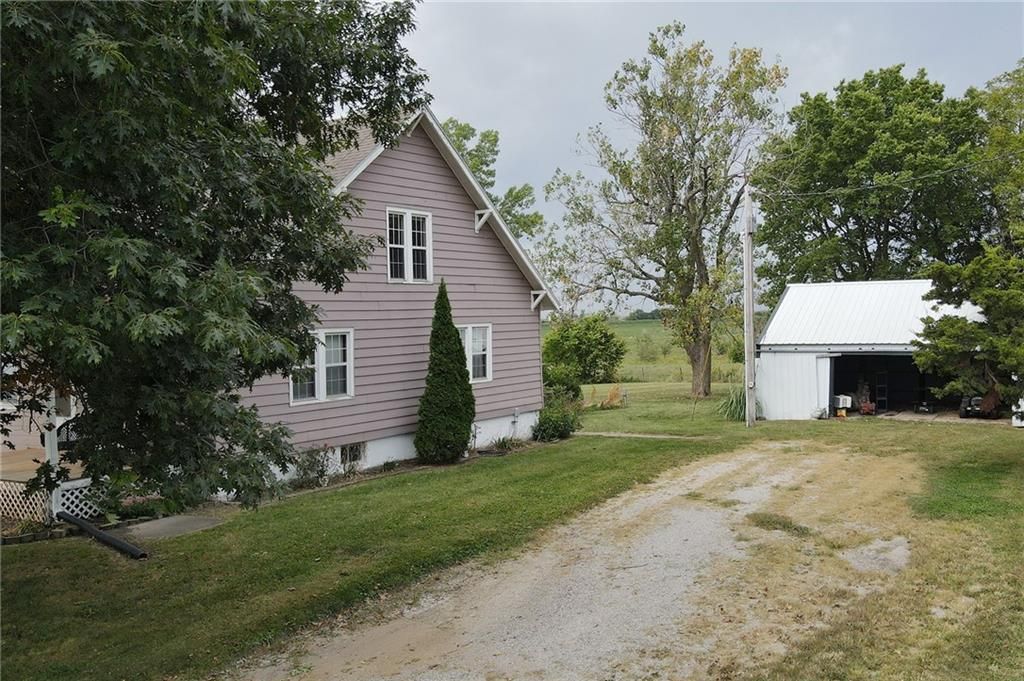 Escape to the countryside with this charming 3-bedroom, 1-bath farmhouse sitting on 4.8 acres, conveniently located off 36 Highway. This home features a large detached garage, perfect for storage or projects, as well as hookups ready for a hot tub and swimming pool. Enjoy the serene surroundings from the front porch or relax on the back deck. The unfinished basement provides plenty of extra space for storage or future customization. Located within the Osborn School District and offering easy access to the Pony Express Lake Conservation Area, this property is ideal for those seeking a peaceful, rural lifestyle.
