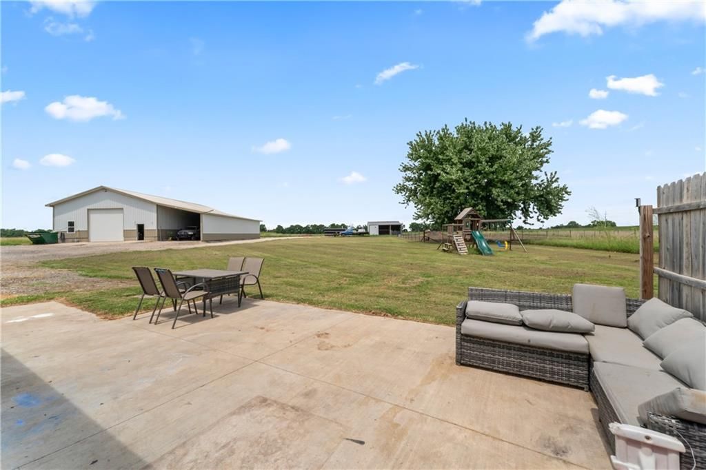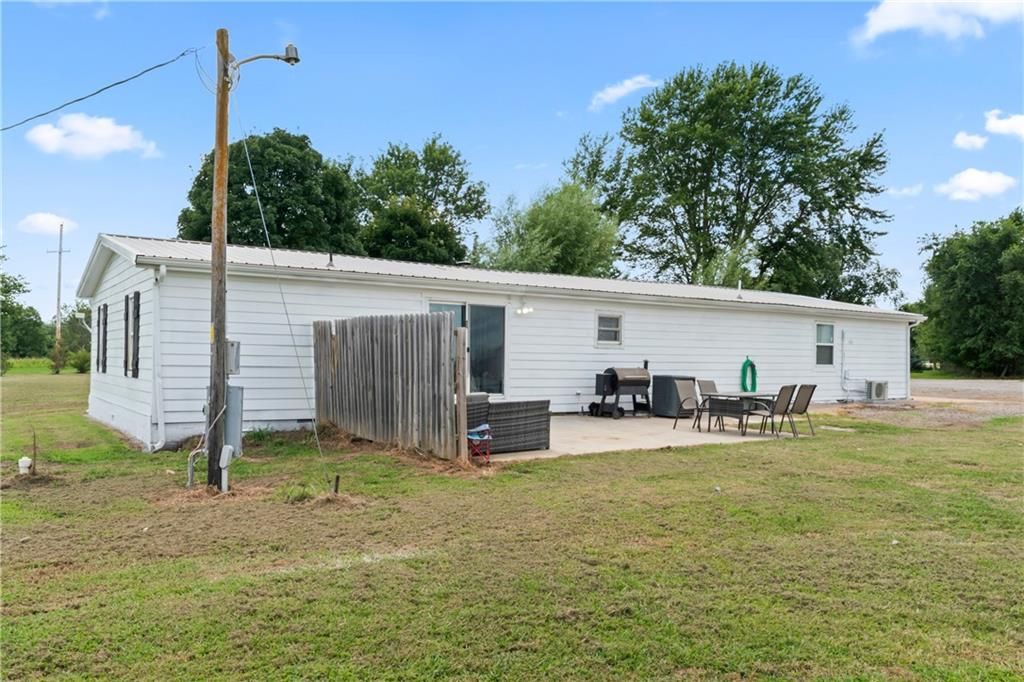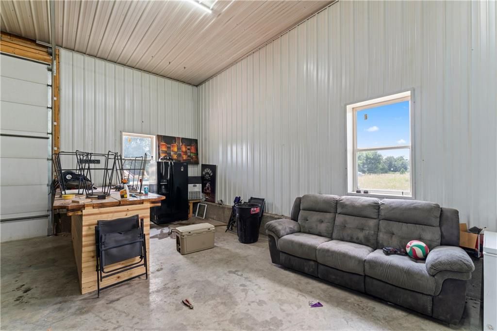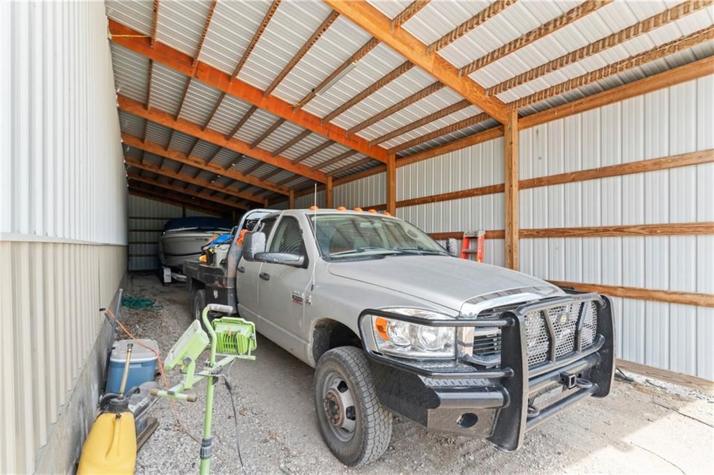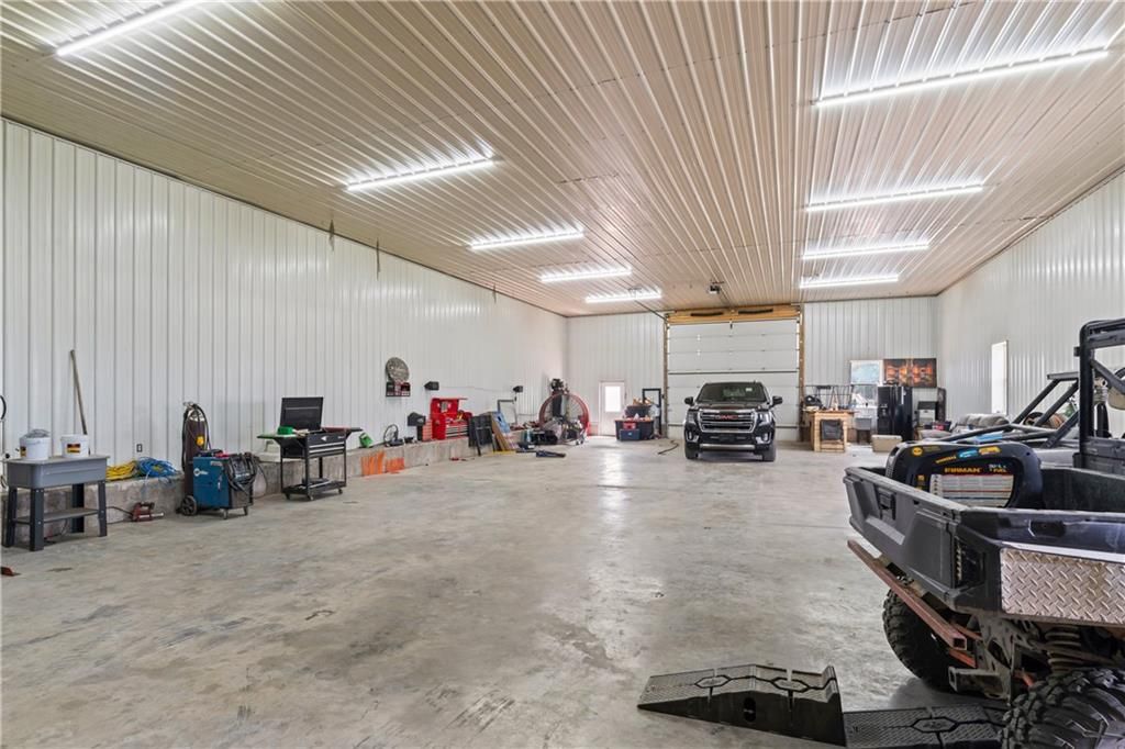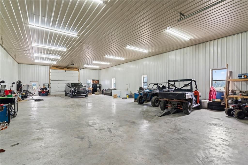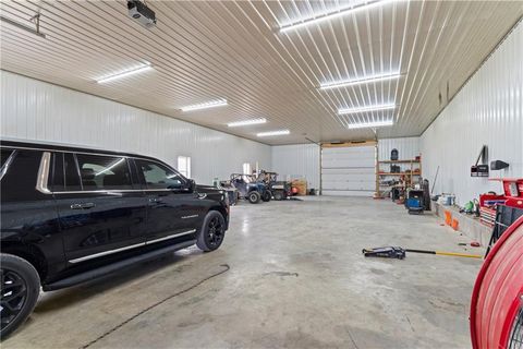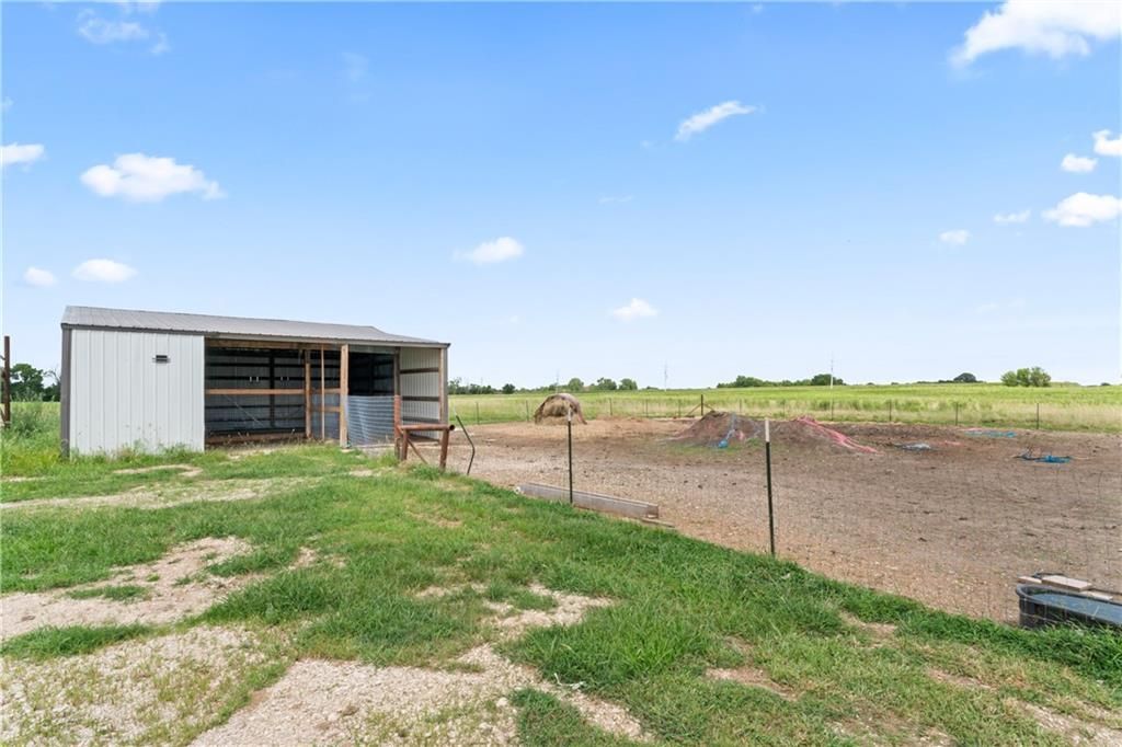 Welcome to your ideal mix of country living and convenience! Situated on 34.64 acres with blacktop frontage and just 1/2 mile from 69 Highway, this corner-lot property offers an easy commute without sacrificing space or privacy. The home features 4 bedrooms, 2 bathrooms, and an attached 1-car garage. Step outside to enjoy a patio perfect for relaxing or entertaining. But the real showstoppers are the outbuildings: a massive 40x80 finished shop with a concrete floor and stubbed water lines ready for radiant floor heat, and an 18-foot lean-to for even more covered storage or workspace. There's also a separate barn designed for livestock with additional storage capacity. Whether you're looking to homestead, run a business, or just spread out and enjoy the land, this versatile property has it all.