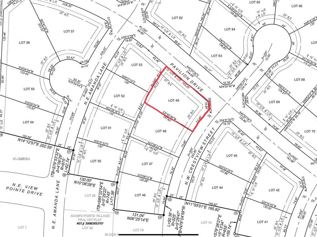 Discover Adam's Pointe Village in Blue Springs, MO, a highly sought-after community offering the perfect blend of convenience and serenity. Located in Blue Springs, MO, this neighborhood is in its 3rd plat, the final phase of development, making it an exclusive opportunity for buyers seeking to build their dream home. Lot 49 is a corner lot and could be a side daylight or side walkout. Residents of Adam's Pointe Village enjoy easy access to nearby shopping, dining, and entertainment options, as well as top-rated schools, making this a fantastic place to call home. Outdoor enthusiasts will appreciate the proximity to local parks and recreational facilities, enhancing the neighborhood's appeal. The walking trail adds an active lifestyle element, creating opportunities for morning jogs, evening strolls, or simply enjoying nature steps from your backyard. With limited available lots, you don't want to miss the chance to become part of this vibrant community.
