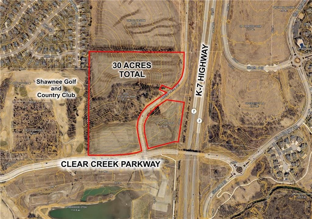 Amazing development opportunity. Land shows as Regional Commercial in Shawnee's Comprehensive Master Plan. Planning staff feel that the property could possibly be Mixed-Use Commercial/Apartments with the right products. Excellent visibility from K-7 Highway. Frontage road already built through site, with water line. Property is currently separated into 2 tracts. One is 5 acres, and the other is 25 acres. Ready to develop!