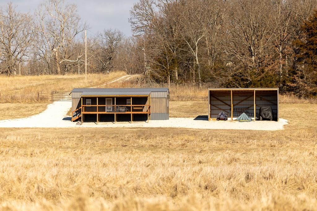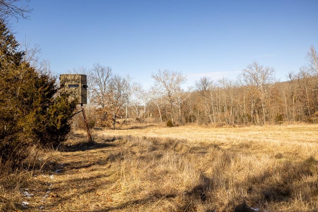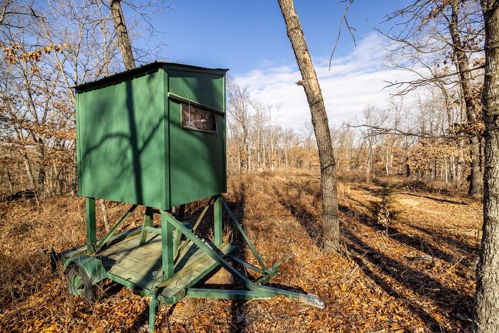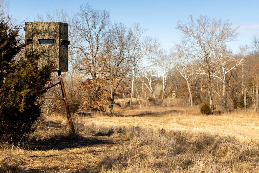Just a short drive west of Collins Missouri on highway 54 and J lays a dream hunting escape. Midwest Land Group is proud to bring to the market 210 acres of a secluded and diverse whitetail and turkey hunting farm. Here you will find a 16X40 one bedroom cabin with all the utilities and amenities to stay as long as it takes to put that trophy buck or long beard in the bag. The metal shed is the perfect space for hanging that deer and storing your UTV and other tools. Hunters can find these deer and turkey in the hills lined with timber or in the grass pastures in the bottom ground. Whichever you choose to hunt there is a stand for either choice, tree or elevated box blinds. The trail system that encompasses the hills and valleys make it accessible to move against the wind whether you are walking or e-biking or even using your UTV. This farm is mostly fenced and has an additional recorded entrance for ease of access. Don't forget the rock bottom wet weather creek that serpentines through the bottoms of the farm that keeps wildlife watered as well. This is a must see hunting tract so call listing agent asap for tour.